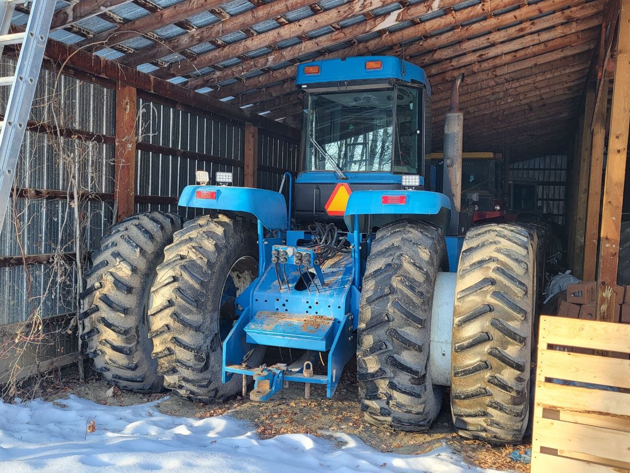 This 1994 New holland Tractor has 6178 hours on it, 4 rear remotes, 12 speed partially synchronized transmission, 250HP Cummins 10.0L 6 cylinder, closed center load-sensing pump 25 gpm (pump replaced in 2024), 20.8-38 tires.