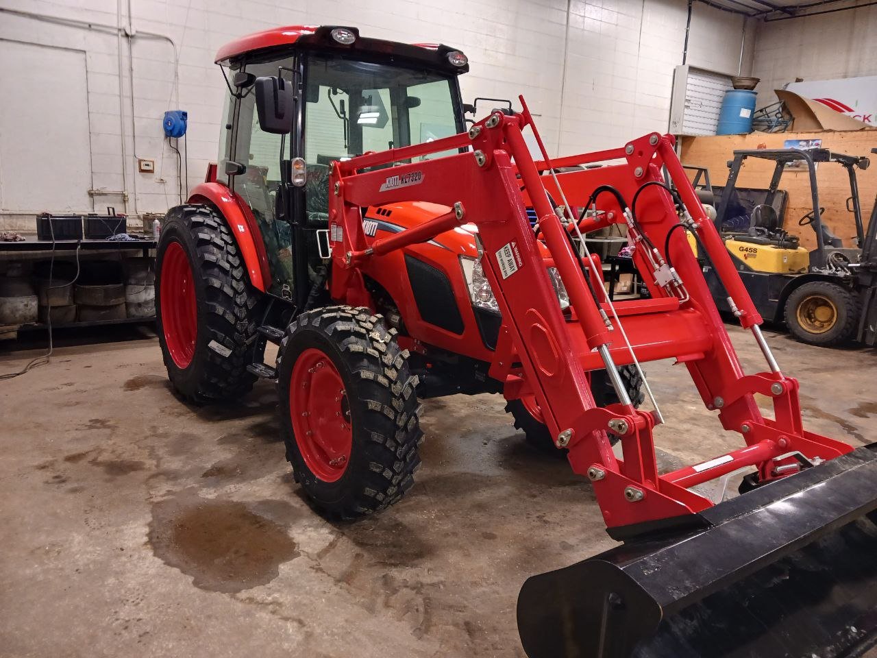 This unit comes with loader and bucket, R14 tires, second and third remote valve, 3rd function valve, rear wiper kit